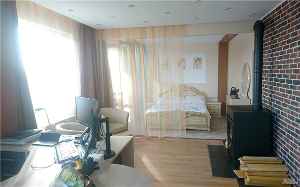 Жилището се състои от голям хол с кухня, две спални, още една голяма спалня с кабинет, две бани с тоалетни и две тераси.